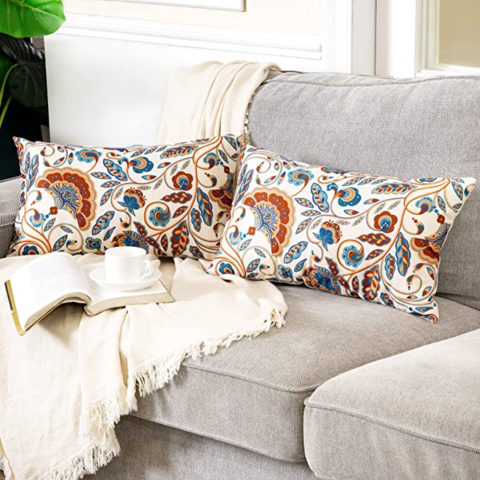 Foxany Pack of 2 Boho Paisley Throw Pillow Covers are soft and comfortable and are perfect for adding a little bohemian style to any room. The classic floral pattern printed on one side and the invisible zipper make it easy to insert and remove the pillowcase.
