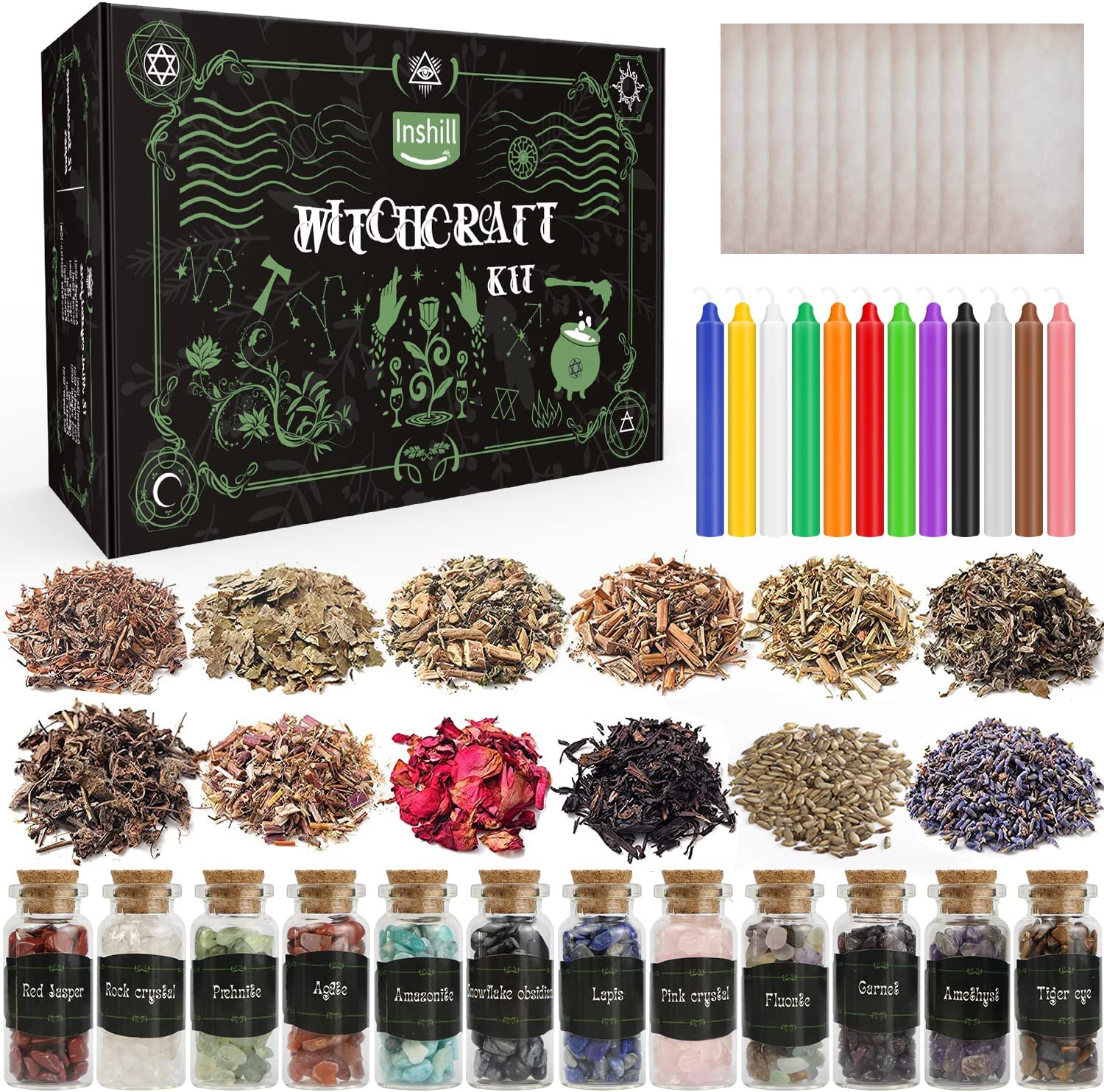 Inshill - Witchcraft Supplies Kit For Witchy Tools Crystal Jars For Witchcraft Beginners