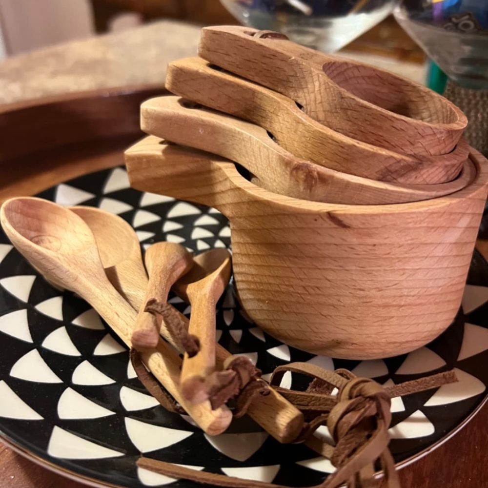 Esie Houzie Wood Measuring Cups And Spoons are a great addition to any kitchen! This set of 8 includes four cups and four spoons, all handcrafted from beechwood with a natural grain finish.