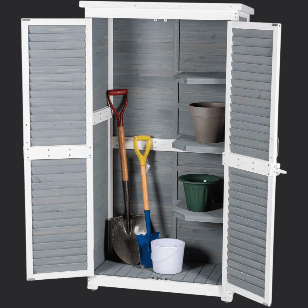 Good Life USA Outdoor Wooden Storage Cabinet is extremely easy to assemble, all you need is an electric drill. It's perfect for storing gardening tools and other outdoor accessories.